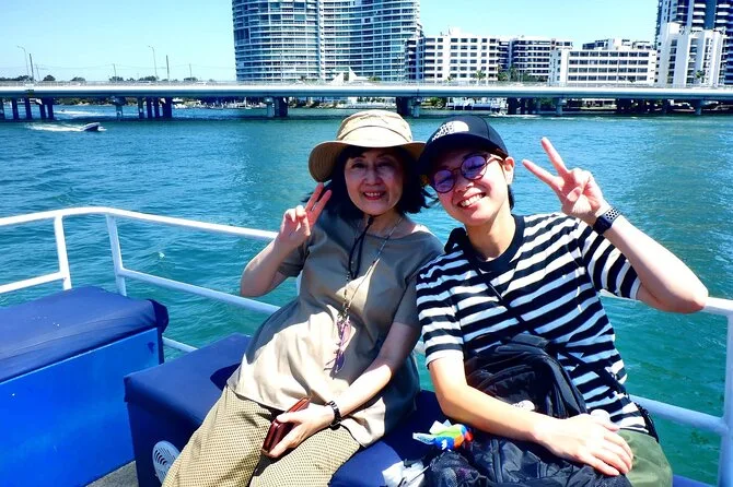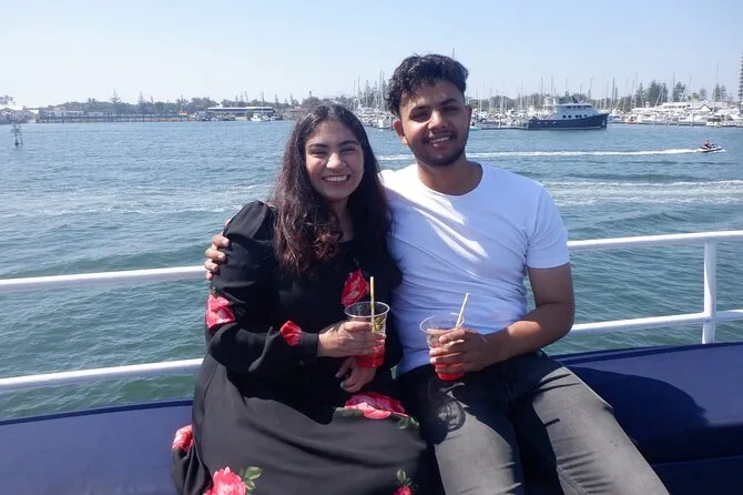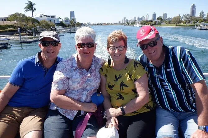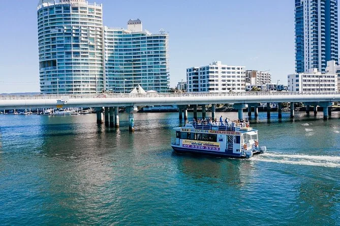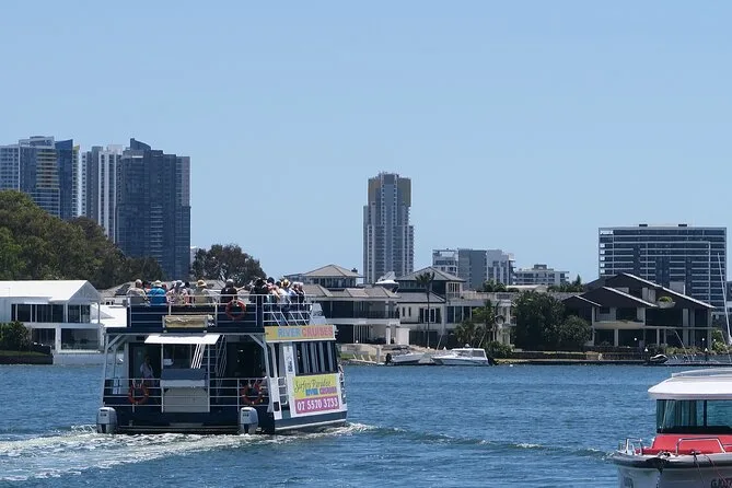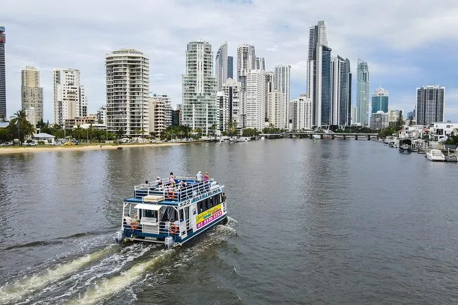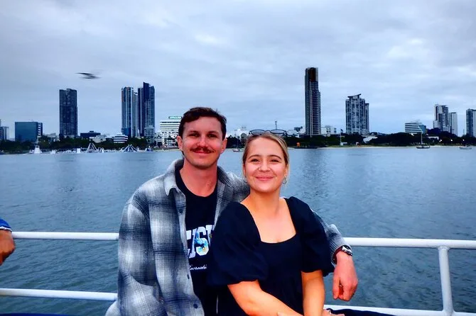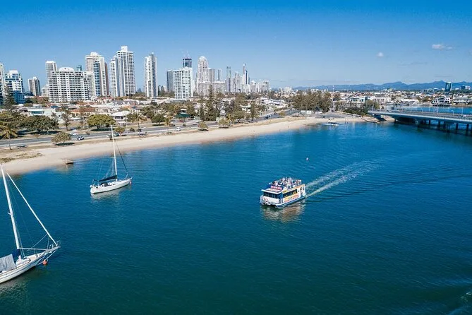 Subimos no barco em Surfers Paradise bem na hora em que o sol começava a se esconder atrás daqueles prédios de vidro altos — sabe aquela luz dourada que deixa tudo mais suave? O convés já estava animado, cheio de gente local e turistas. Nosso guia, Pete (acho que era esse nome — ou será Steve?), acenou pra gente e distribuiu queijo com bolachas. Eu não sou muito fã de queijo, mas tem algo no ar salgado que faz até um cheddar simples ficar especial. O cheiro leve de protetor solar misturado com água do rio, meio estranho, mas super a cara da Gold Coast Broadwater.