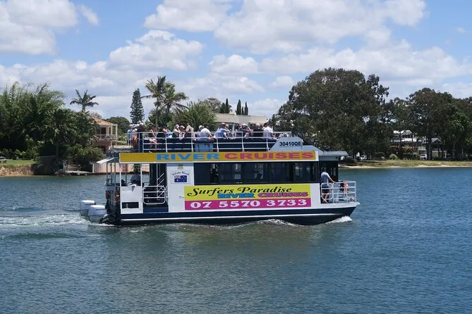 Sua noite inclui 1h30 navegando pelos canais da Gold Coast a partir de Surfers Paradise com comentários locais durante todo o trajeto; aproveite petiscos grátis como queijo e bolachas, acesso a dois decks — um deles aberto, perfeito para fotos — e bebidas disponíveis para compra no bar licenciado, retornando após o anoitecer.