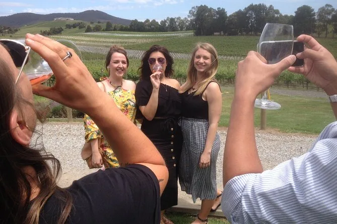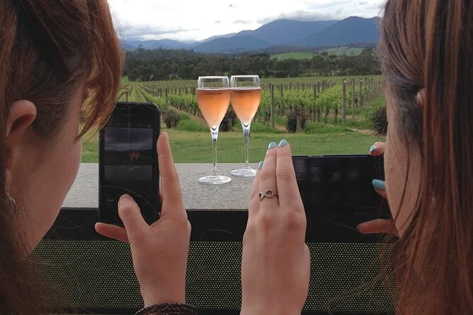 Seu dia inclui transporte do centro de Melbourne, degustações guiadas na Domaine Chandon, Soumah, Tokar Estate e Yering Farm; além de um almoço de dois pratos com vinho e vista para as vinhas antes de voltar à cidade à tarde.