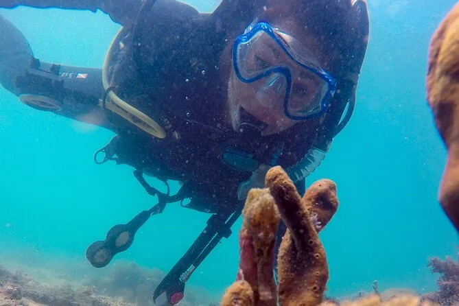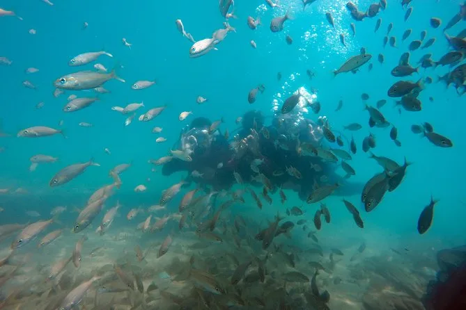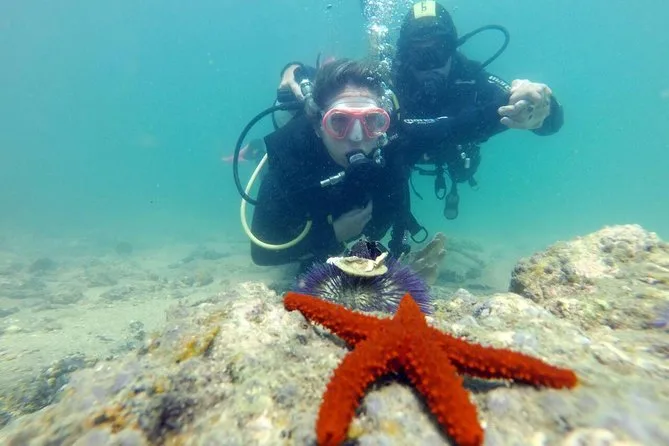 Sua sessão inclui todo o equipamento de mergulho — máscara, nadadeiras, snorkel, roupa de neoprene, regulador, colete e cilindros — e começa com uma aula teórica leve seguida de tempo ilimitado para adaptação em água rasa antes do mergulho guiado de 30 minutos com um instrutor local experiente.