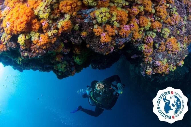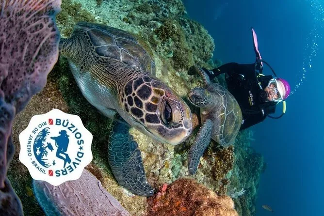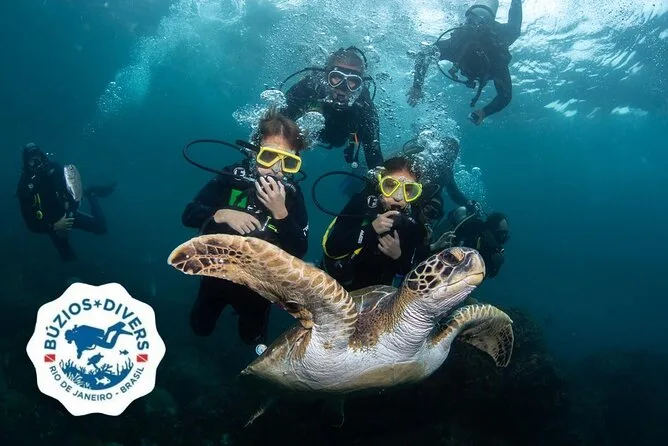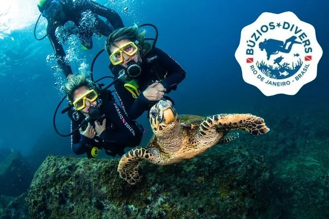 Seu dia inclui mergulho para iniciantes ou certificados nos melhores pontos de Búzios, como o Santuário das Tartarugas na Ilha de Âncora, com um instrutor especializado; transporte público próximo, se precisar; animais de serviço são permitidos; aluguel de equipamento disponível para iniciantes, mas não incluso para certificados; e muita troca de histórias com locais entre os mergulhos antes de voltar renovado.