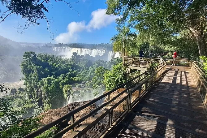 Seu dia inclui transfer do hotel em Puerto Iguazú, todas as caminhadas guiadas pelos Circuitos Inferior e Superior com guia local profissional, transporte em van com ar-condicionado e o passeio de trem pela floresta até a Garganta do Diabo, retornando com conforto.