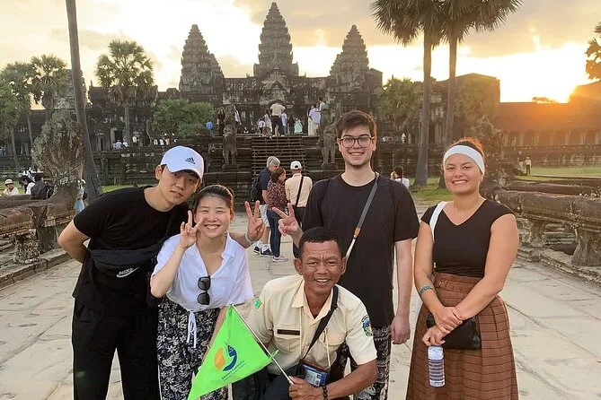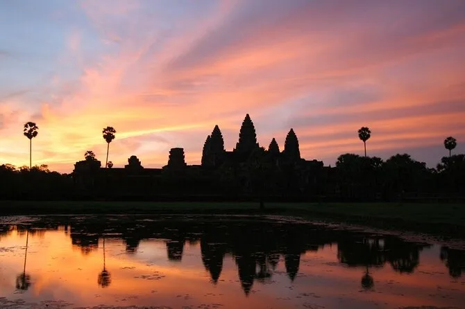 O tour começa antes do amanhecer para você entrar em Angkor Wat ainda no escuro; o horário exato depende da época do ano.