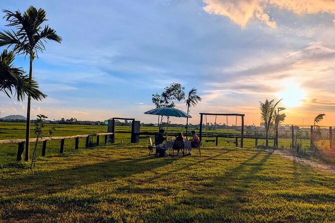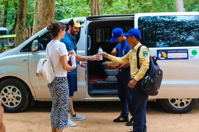 Seu roteiro inclui transporte confortável com ar-condicionado, busca e retorno ao hotel em Siem Reap, água engarrafada e toalhas refrescantes durante o trajeto, além da companhia de um guia local experiente que vai contar histórias enquanto exploram cada templo juntos — e claro, tempo para relaxar com um drink gelado no pôr do sol entre os arrozais antes de voltar à noite.
