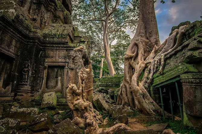 O almoço não está incluído, mas há tempo reservado para comer em um restaurante local perto de Ta Prohm; pratos custam a partir de 5 dólares.