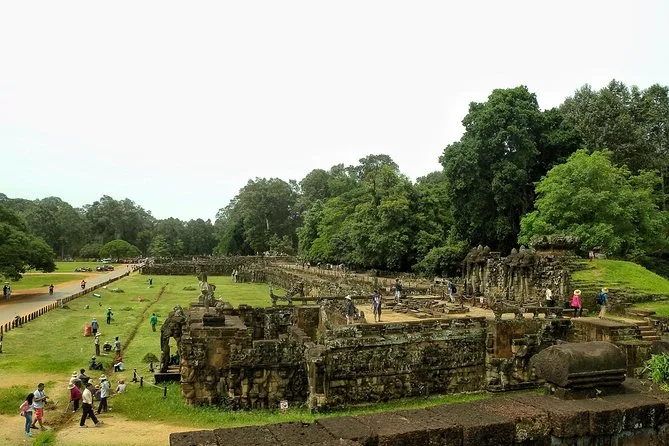 O tour inclui Angkor Wat, Ta Prohm, Ta Nei, Bayon, Baphuon, Phimeanakas (Complexo Real), Terraço dos Elefantes e Rei Leproso, além do Phnom Bakheng para o pôr do sol.