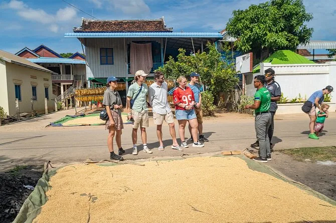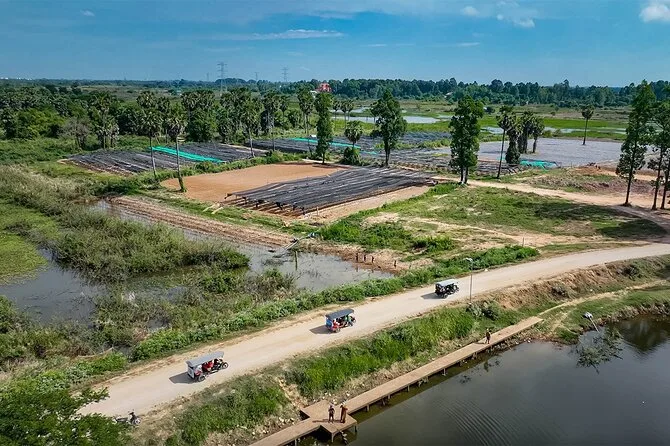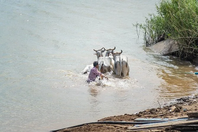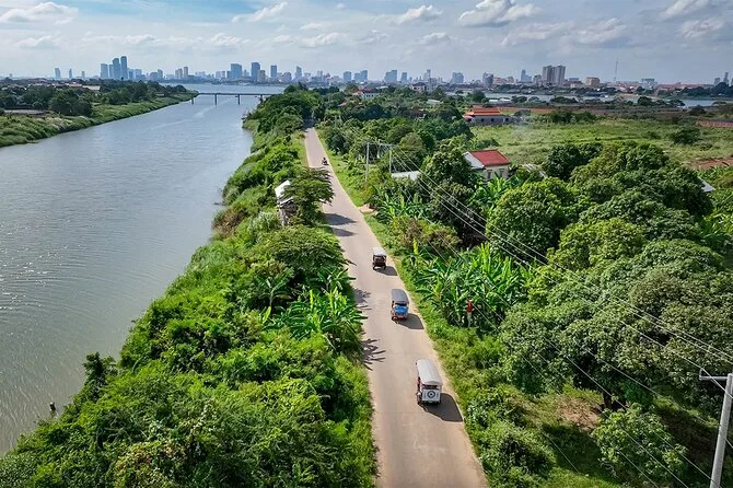 Você vai atravessar o Mekong de balsa, andar de tuk-tuk pelas vilas da Ilha da Seda, visitar uma casa tradicional de tecelagem com um guia local e provar petiscos típicos do Camboja pelo caminho. Prepare-se para momentos autênticos — crianças acenando, tecelagem na prática — e volte para Phnom Penh com histórias que vão ficar na memória.