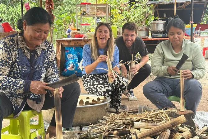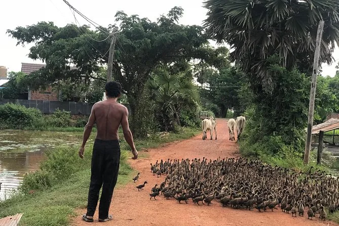 Você sai de Siem Reap num jeep aberto com um guia local, visita um mosteiro budista onde pode conversar com monges, passeia por hortas de vilarejos e termina o dia assistindo ao pôr do sol nos campos de arroz com um drink na mão. Espera por surpresas simples e momentos de verdade — não só para ver, mas para sentir e levar na memória.