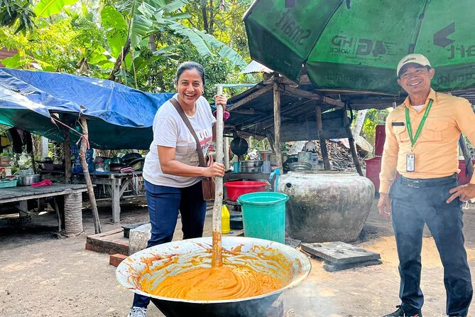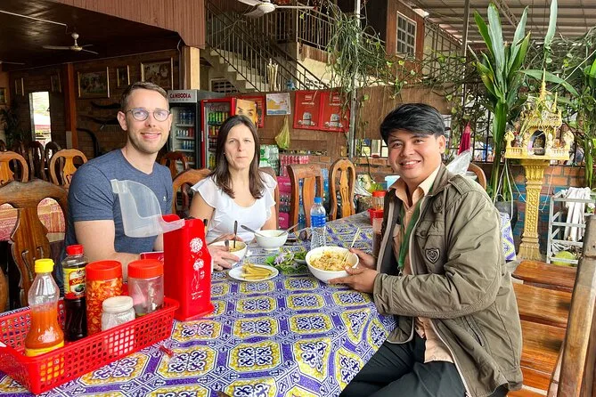 Seu tour de dois dias inclui transporte diário do hotel em Siem Reap em minivan ou micro-ônibus com ar-condicionado; café da manhã com comida local no primeiro dia; almoço em restaurante local no segundo dia (com opções vegetarianas se avisar antes); água gelada e toalhas disponíveis o tempo todo; além de um guia especialista que fala inglês e compartilha histórias em cada parada, retornando ao hotel todas as tardes.