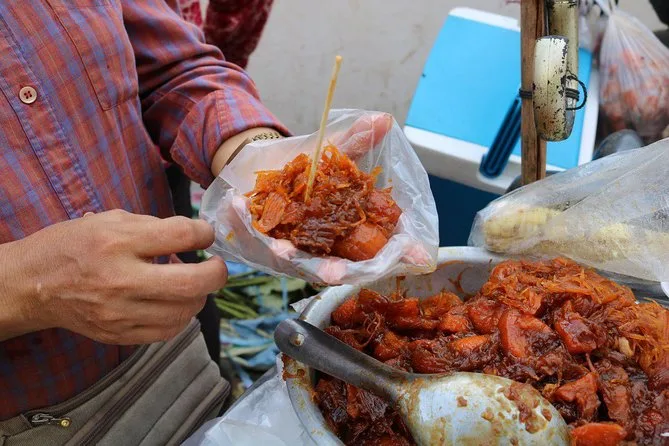 Seu passeio à noite inclui traslado de ida e volta do hotel em remok, todas as degustações de comida de rua, jantar completo, água mineral, uma cerveja local para experimentar durante o trajeto e muitas histórias do seu guia antes de voltar ao hotel.