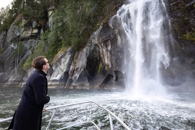 Você vai navegar de Campbell River passando por ilhas e fiordes cheios de vida na primavera — observando ursos na costa, avistando baleias jubarte voltando para o norte e parando em cachoeiras que descem por penhascos verdes. Com um guia local contando histórias e almoço a bordo, é um dia cheio de surpresas e momentos selvagens que vão ficar na memória muito depois da viagem.