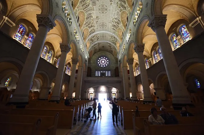 Seu meio dia inclui transporte saindo do Velho Quebec pelo Château Frontenac, todos os impostos locais, paradas no Parque das Cataratas Montmorency, no santuário de Sainte-Anne-de-Beaupré (com tempo para explorar), visita ao Museu e Boutique de Arte em Cobre Albert Gilles, além de um rápido passeio pela Île d'Orléans com chance de provar chocolate com vista para o rio antes de voltar para a cidade.