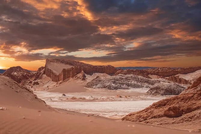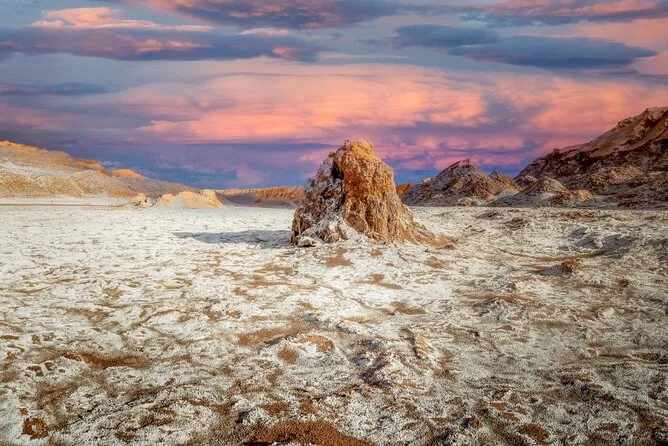 Você vai caminhar pelas cristas salgadas do Vale da Lua enquanto o pôr do sol pinta os vulcões distantes, flutuar leve nas águas salgadas da Lagoa Cejar, observar galáxias com um astrônomo especialista sob o céu famoso do Atacama e provar sabores locais entre as cores surreais de Piedras Rojas — tudo com traslado incluso para você aproveitar cada momento.