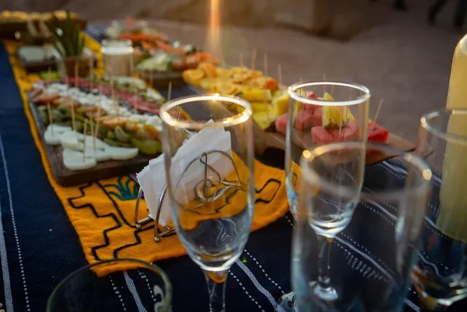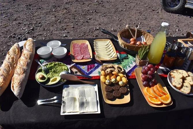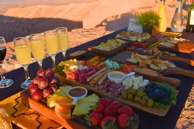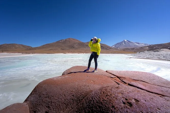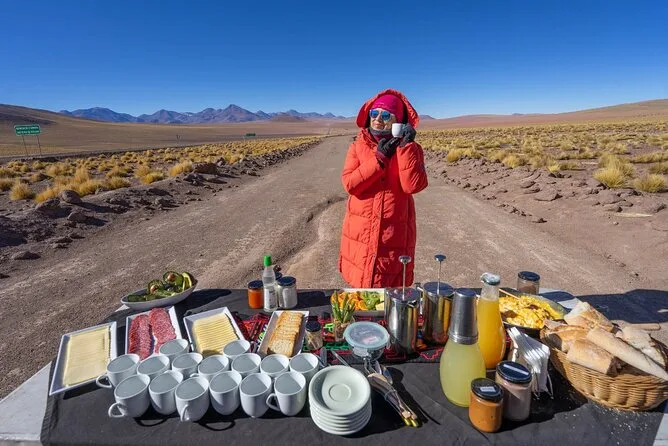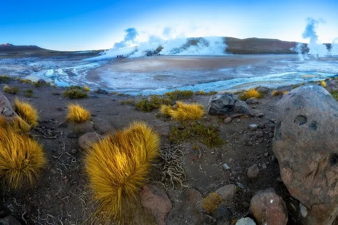 Seu passeio inclui traslado diário do hotel em San Pedro de Atacama em veículo com ar-condicionado, todas as taxas de entrada e impostos para locais como Vale da Lua e gêiseres El Tatio, cafés da manhã e almoços em buffet com pratos locais como ensopado de quinoa (e bastante chá de coca se precisar), tour astronômico guiado com telescópios montados por um especialista local publicado — e bastante tempo para flutuar nas lagoas salgadas ou explorar vales coloridos antes de voltar todo dia.