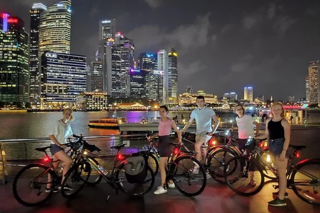 Você vai pedalar pela Marina Bay iluminada de Singapura à noite — passando por parques à beira do rio, Estádio Nacional, Singapore Flyer, Merlion Park e até uma parte da pista de F1. Com um guia local, paradas para fotos e para sentir a vibe da cidade depois do anoitecer, esse passeio mostra tanto a energia quanto os cantinhos mais tranquilos de Singapura.