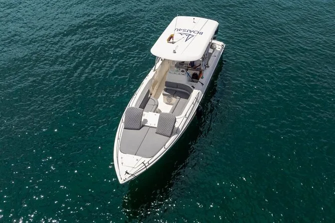 Sua reserva inclui barco privado com capitão e copiloto, combustível, sistema de som com WiFi para música e uma caixa térmica para suas bebidas ou lanches.