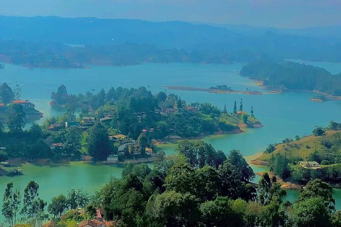 Experimente um café da manhã típico perto de Medellín, visite uma fazenda em Marinilla para conhecer lhamas, faça um passeio de barco pelo lago Guatapé passando por casas de celebridades. Explore as ruas coloridas de Guatapé e encare os 742 degraus da Piedra del Peñol, ou aproveite a vibe da vila com algo doce na mão.