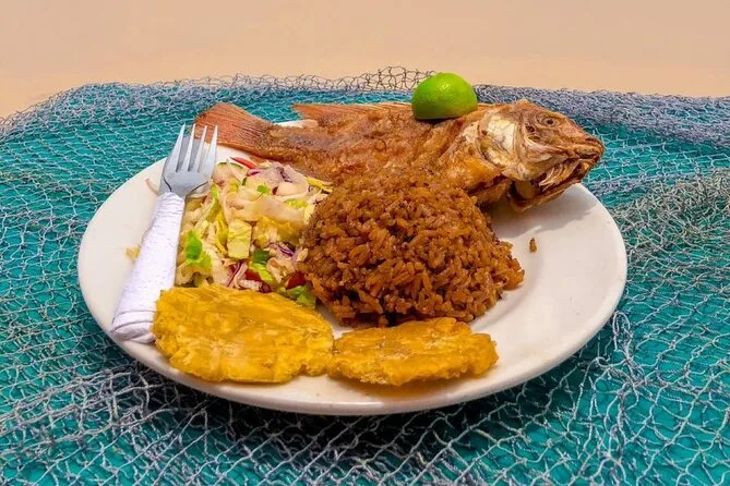 O almoço era simples, mas perfeito: peixe frito com arroz de coco e banana-da-terra, tudo sob um guarda-sol enquanto os pelicanos brigavam ali perto. Tinha opção vegetariana também — minha amiga experimentou e disse que tinha gosto de sol (não sei bem o que isso quer dizer, mas ela estava feliz). Tentei falar “biche” igual o Andrés quando ele trouxe outra rodada de bebidas de manga. Ele riu — parece que meu sotaque não tem salvação. Mas é isso que faz esse passeio para a Ilha de Barú especial: ninguém tem pressa nem fica julgando como você fala. Até o sol parecia desacelerar.