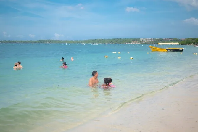 O passeio inclui transporte direto de Cartagena até Playa Tranquila na Ilha de Barú; os detalhes são enviados após a reserva.