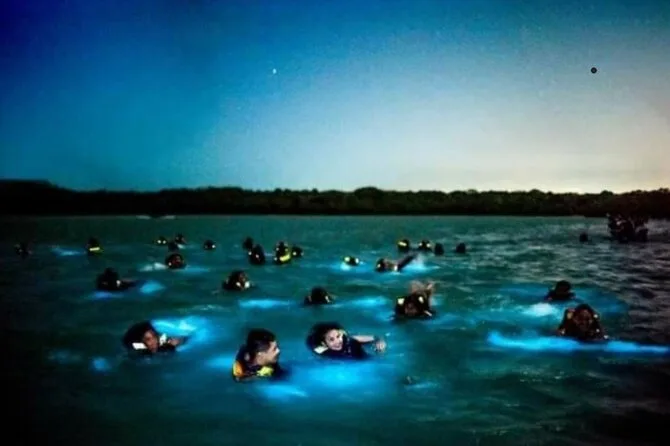 Depois fomos para Cholon — música por toda parte, barcos amarrados formando uma festa flutuante. Alguém me entregou um copo com coquetel de camarão (picante e azedinho — muito melhor do que eu esperava) enquanto o grupo tentava se comunicar por cima do reggaeton. Em seguida, paramos para um mergulho rápido em Agua Azul — a cor da água é realmente impressionante — e finalmente chegamos à Playa Tranquila, em Barú, para o almoço por volta das 13h30. Peixe frito, arroz de coco... simples, mas perfeito depois de uma manhã inteira nadando. Alguns ficaram até mais tarde para ver o fenômeno do plâncton ao pôr do sol; quase me arrependi de não ter ficado também.