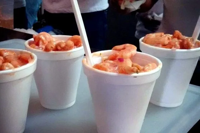 O passeio inclui uma degustação de coquetel de camarão em Cholon e almoço (geralmente peixe frito com arroz de coco) na Playa Tranquila, em Barú.