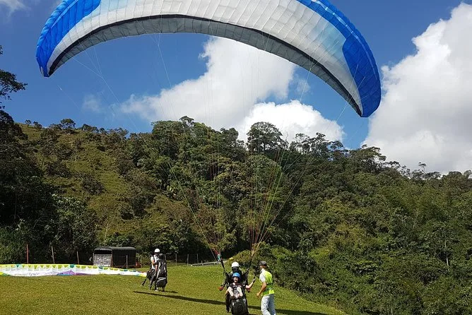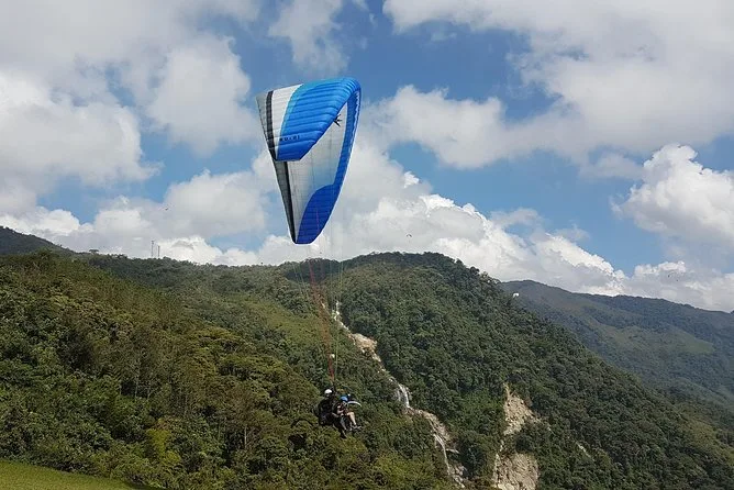 Você sai de Medellín com guias locais rumo a Cocorná, decola para um voo de parapente sobre cachoeiras gigantes e cânions verdes. Sinta o vento, veja rios escondidos lá embaixo e depois aproveite um almoço tradicional no topo das montanhas de Antioquia antes de voltar — com o coração ainda acelerado por essas paisagens.