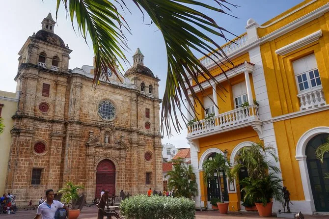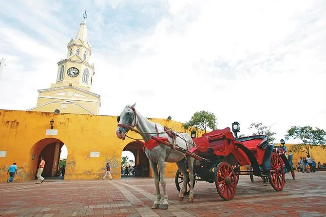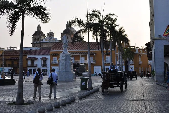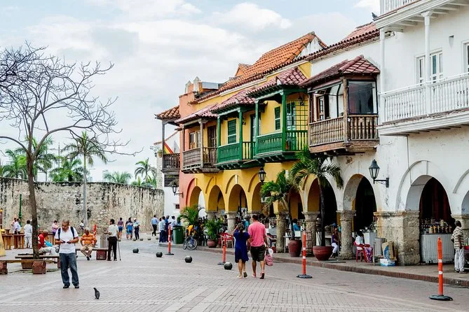 A primeira coisa que me atingiu ao sair do carro foi o ar quente e salgado — Cartagena nunca deixa você esquecer que está à beira-mar. Nosso guia, Andrés, nos encontrou bem embaixo dos arcos amarelos da Torre del Reloj. Ele tinha um talento especial para entrelaçar pequenas histórias sobre o relógio e a Plaza de la Aduana — como os moradores ainda discutem sobre qual padaria faz as melhores arepas por ali. A praça já estava cheia de vida às 9 da manhã, com vendedores montando carrinhos de frutas e crianças correndo atrás dos pombos.