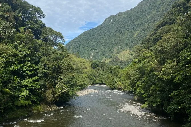 Logo no começo, senti o frescor da névoa no ar enquanto caminhávamos pela antiga trilha à beira do rio Santo Domingo. O caminho serpenteia por uma mata densa e verde — às vezes, o cheiro da terra molhada aparece ou o bater de asas corta o silêncio. Nosso guia, Don Jaime, que nasceu aqui, mostrava pequenas orquídeas agarradas aos troncos das árvores. De vez em quando, o som da água correndo ficava mais alto e, de repente, uma nova cachoeira despencava das pedras. Paramos para um mergulho rápido no rio; confesso que a água estava mais fria do que eu esperava, mas foi revigorante depois de caminhar sob o sol do meio-dia.