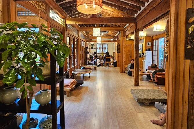 O tour passa por áreas dos palácios Changdeokgung e Gyeongbokgung, mas não garante ingresso; confirme com seu guia no dia.