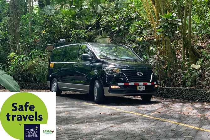 Seu trajeto inclui recepção no Aeroporto SJO por um motorista local com placa com seu nome, transporte privado em veículo recente com WiFi grátis e água mineral, além de paradas flexíveis para fotos ou café — é só avisar o motorista se quiser ver algo ou precisar de atenção especial para crianças ou idosos.