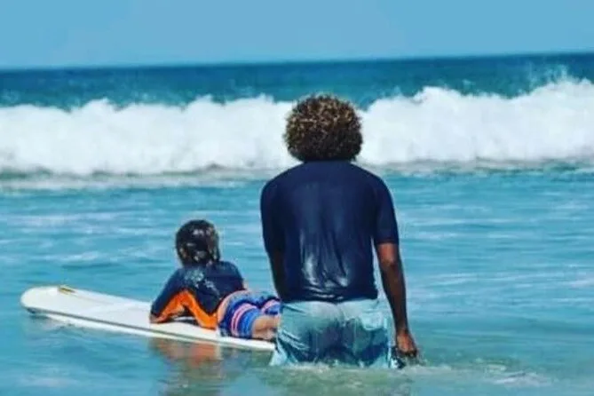 Com certeza — iniciantes aprendem o básico, como remar e ficar em pé com segurança antes de encarar as ondas.