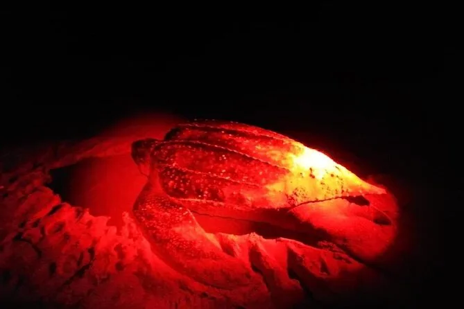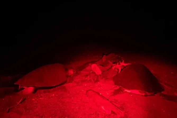 Seu passeio inclui traslado em veículo com ar-condicionado em Tamarindo, água para se manter confortável durante a espera na areia e lanternas com filtro vermelho para observar as tartarugas sem incomodá-las, retornando após a meia-noite.