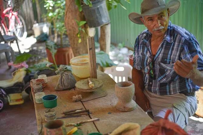 Sim, há uma parada em uma oficina de cerâmica Chorotega onde você conhece artesãos locais.
