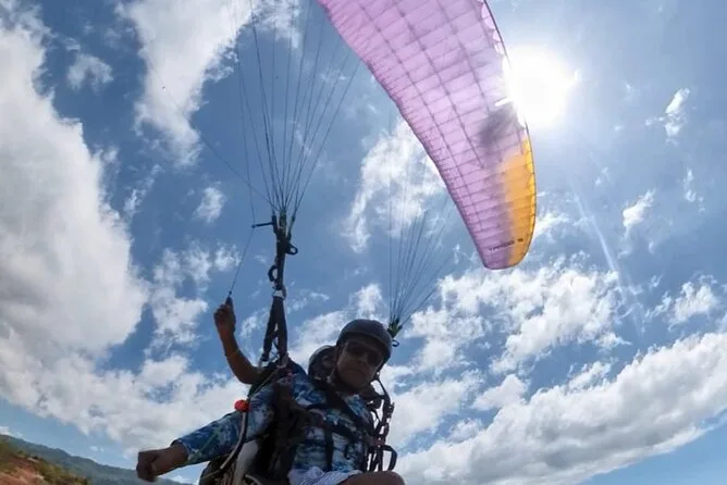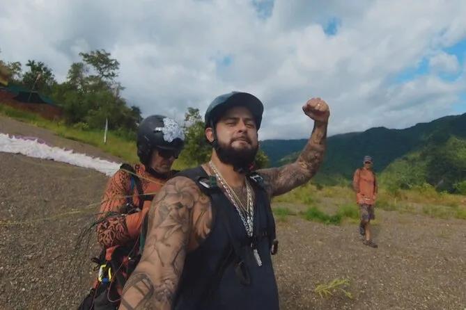 O passeio inclui transporte do hotel ou ponto de encontro, todo o equipamento de segurança (cintos, capacetes), hidratação antes do voo, WiFi no acampamento base e o suporte de pilotos locais experientes que acompanham você durante toda a aventura de parapente.