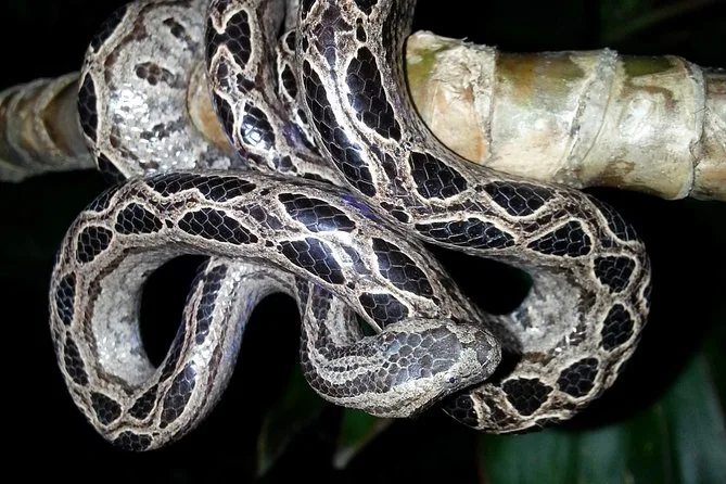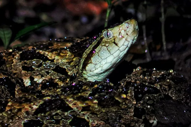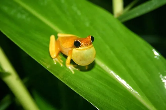 Você pode ver sapos, cobras, insetos coloridos, mamíferos e outras criaturas noturnas da floresta.