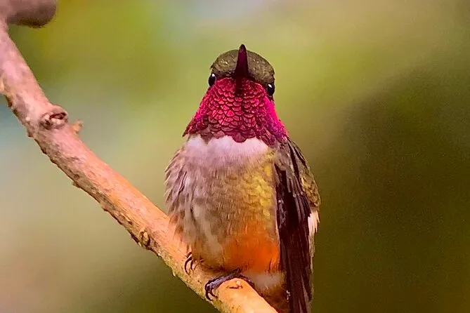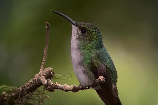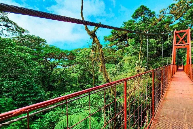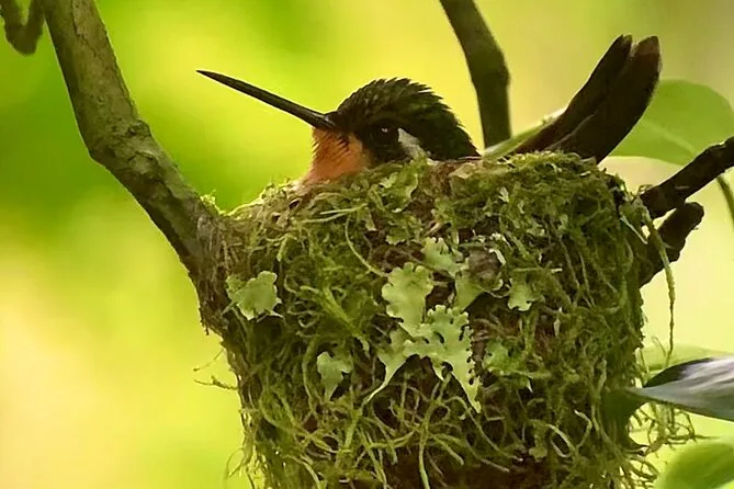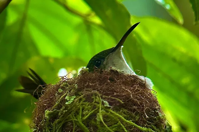 Seu dia inclui uma caminhada guiada pela floresta nublada de Monteverde com um naturalista local certificado, uso compartilhado de binóculos e telescópio para observar a vida selvagem de perto, seguro de viagem para sua tranquilidade, além de um lanche tradicional costarriquenho feito na região — servido perto do santuário de beija-flores antes de voltar para a cidade.