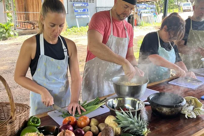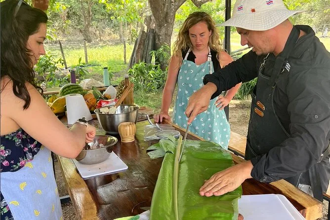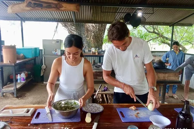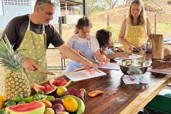 Sua experiência inclui instrução prática com uma chef local em Nosara, todos os ingredientes para pratos tradicionais da Costa Rica preparados no fogão a lenha, além de almoço e suco natural fresquinho para compartilhar à mesa quando tudo estiver pronto.