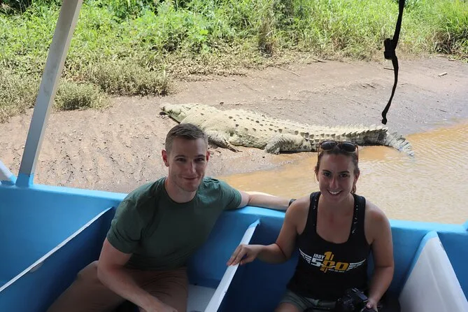 Seu dia inclui um passeio tranquilo pelo Rio Tarcoles com comentários ao vivo de um guia bilíngue experiente focado em jacarés e observação de aves; todas as áreas são acessíveis para cadeirantes para que todos aproveitem; há estacionamento privativo no píer e jardins acolhedores na chegada.