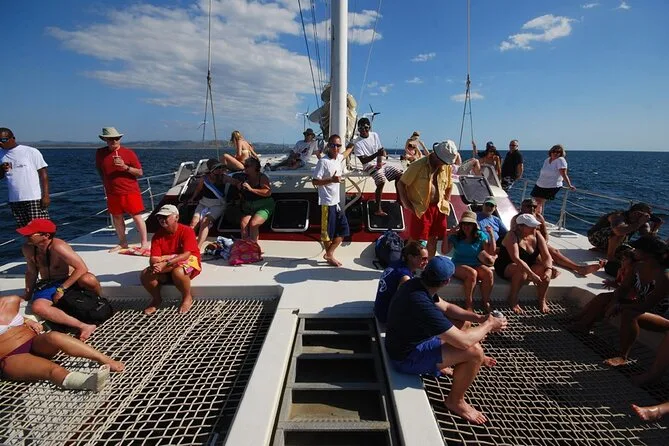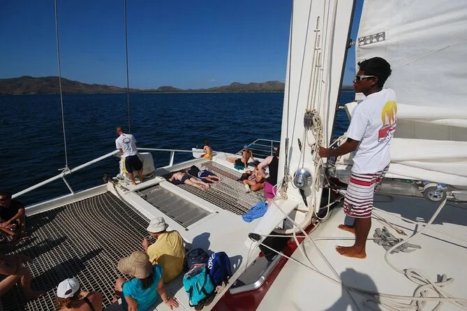Sua tarde inclui traslado do hotel se solicitado (com custo adicional), todos os impostos pagos antecipadamente, bebidas ilimitadas no open bar durante o passeio — incluindo coquetéis locais — e uso do equipamento de snorkel para você mergulhar assim que ancorarmos. O almoço é servido fresco a bordo antes de navegarmos de volta ao pôr do sol rumo a Tamarindo ou Playas del Coco.