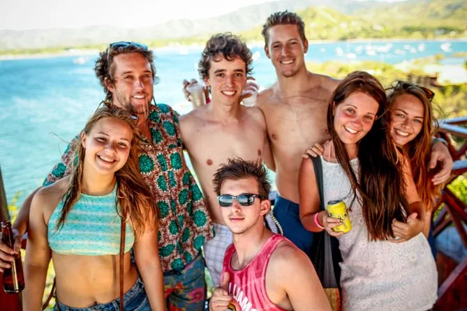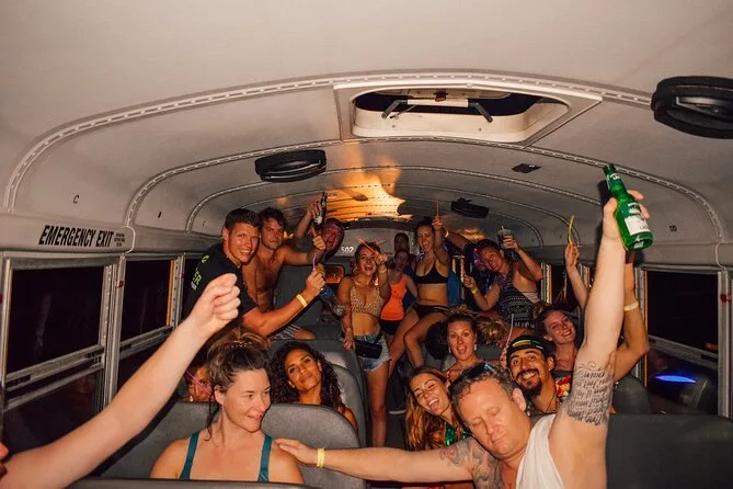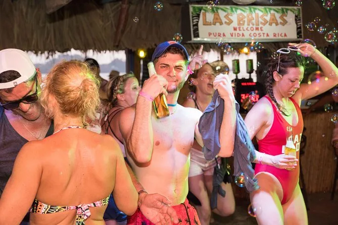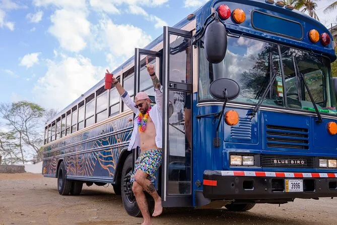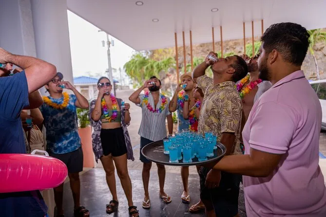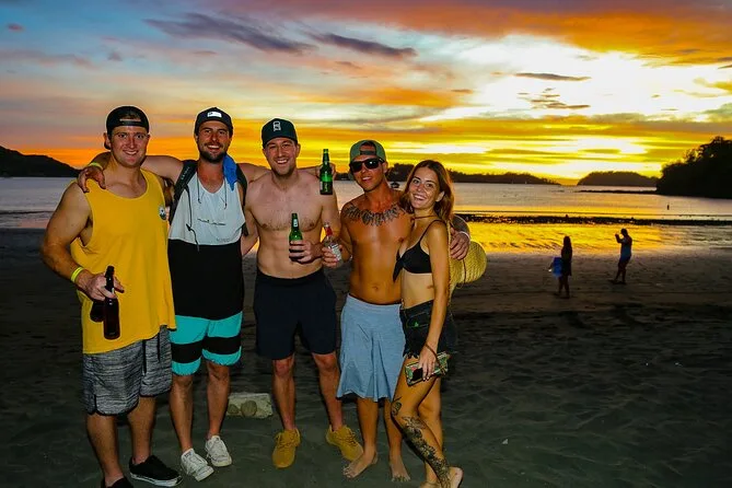 Seu dia inclui um guia local que te leva de party bus saindo de Tamarindo, com entretenimento ao vivo, drinks de boas-vindas em cada parada (sim, shots contam), descontos em happy hour para comida e bebida, além de uma grande fogueira na praia ao pôr do sol antes do transporte de volta à noite. Impostos locais já estão inclusos — só traga sua energia (e protetor solar, claro).