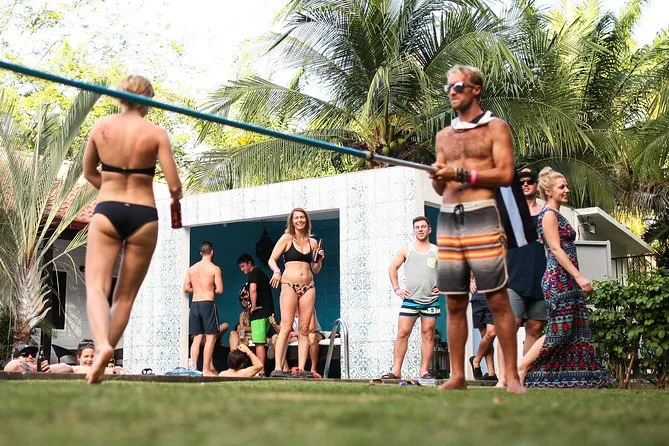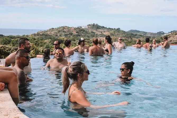 Você vai pular entre piscinas e praias perto de Tamarindo & Flamingo em uma festa de domingo cheia de energia. Drinks de boas-vindas em cada parada, jogos na piscina com gente nova, dança ao pôr do sol na fogueira da praia e transporte tranquilo de volta — tudo guiado por locais que sabem como manter a vibe lá em cima.