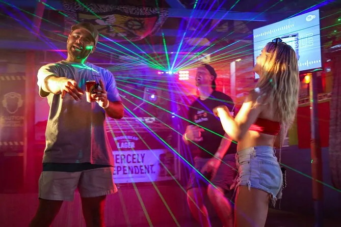 Você ganha um drink ou shot de boas-vindas em cada bar; outras bebidas são vendidas à parte.