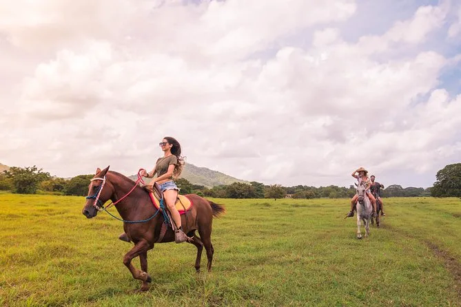 O seu dia inclui transfer de ida e volta do hotel em Tamarindo ou Flamingo, uso de cavalo bem treinado com capacete e equipamentos de segurança fornecidos pelo guia local, todos os impostos e taxas, além de água mineral durante o passeio, antes do retorno após o tempo na Praia Conchal.