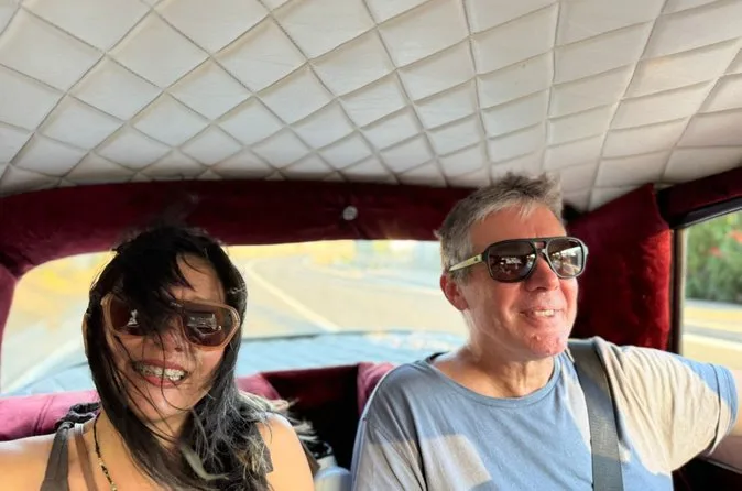 Roupas e calçados confortáveis são o ideal. Leve chapéu ou óculos de sol — o carro é de 1973 e pode esquentar nos dias de sol.