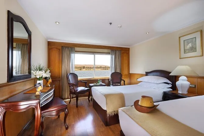 Você terá um guia egiptólogo particular durante toda a viagem; todas as taxas de entrada entre Aswan e Luxor estão incluídas; acomodação com pensão completa no navio de cruzeiro pelo Nilo; transporte com ar-condicionado para as excursões; assistência da nossa equipe durante a estadia; impostos e taxas de serviço também inclusos.