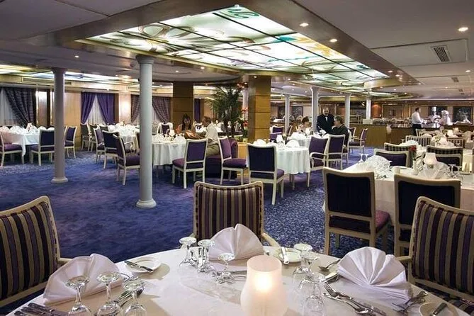 Todas as refeições estão incluídas enquanto você estiver a bordo — café da manhã, almoço e jantar com pratos locais e opções internacionais.
