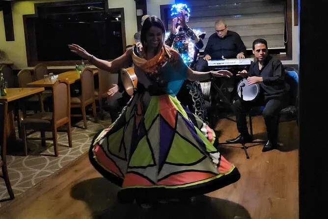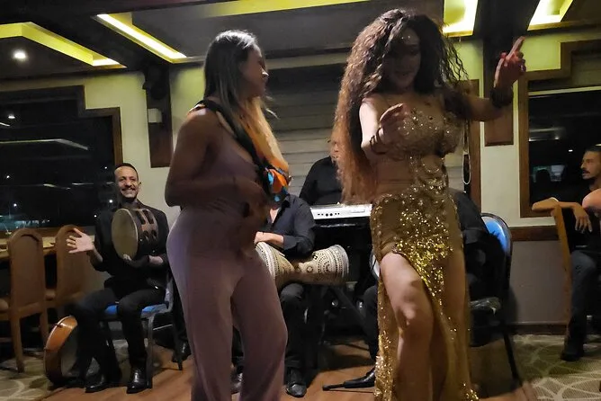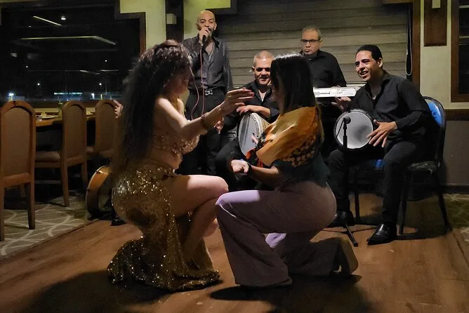 O cruzeiro oferece dança do ventre ao vivo, show de Tanoura, apresentações folclóricas núbias e um cantor.