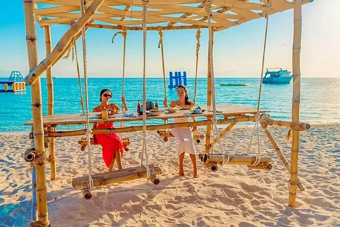Seu dia inclui traslado em veículo com ar-condicionado de qualquer lugar em Hurghada, entradas para Orange Bay e Ilha Hula Hula, uso do equipamento de snorkel com acompanhamento de guia local em cada parada, bebidas ilimitadas (refrigerantes e quentes) a bordo e almoço buffet antes do retorno confortável ao hotel no fim da tarde.