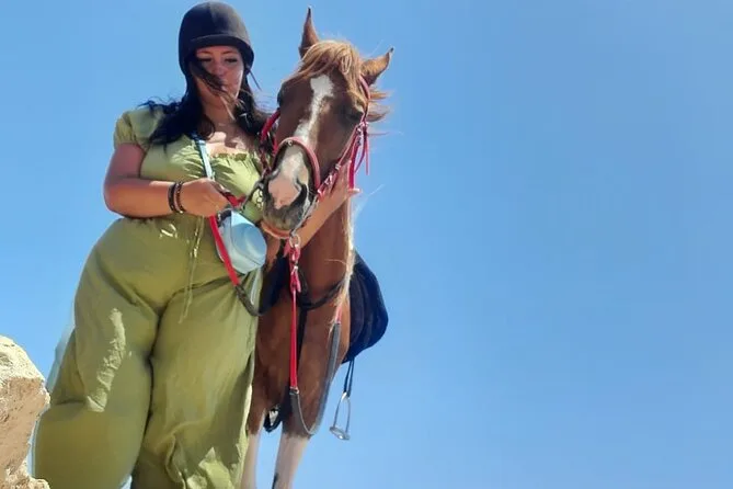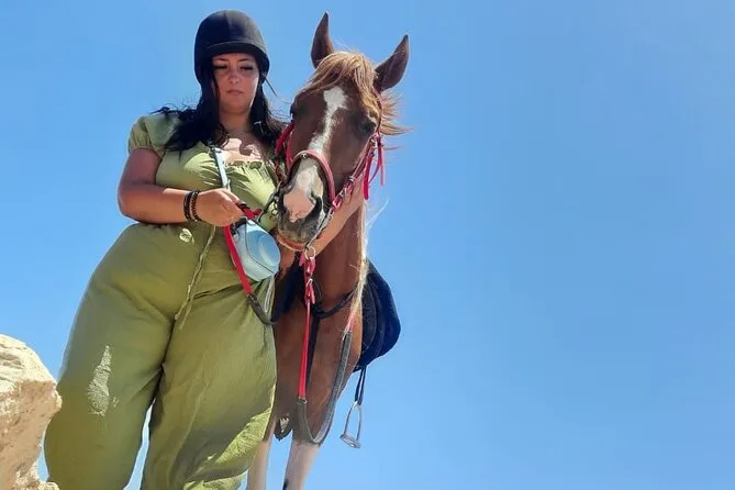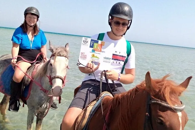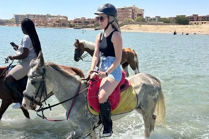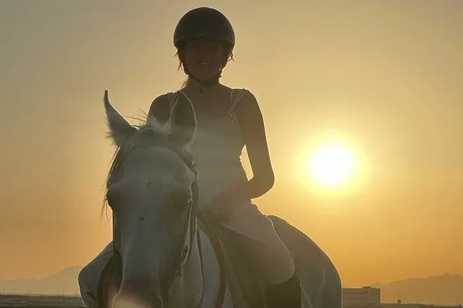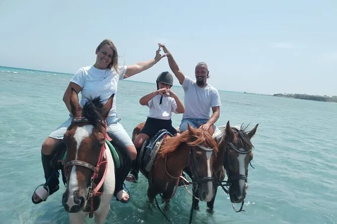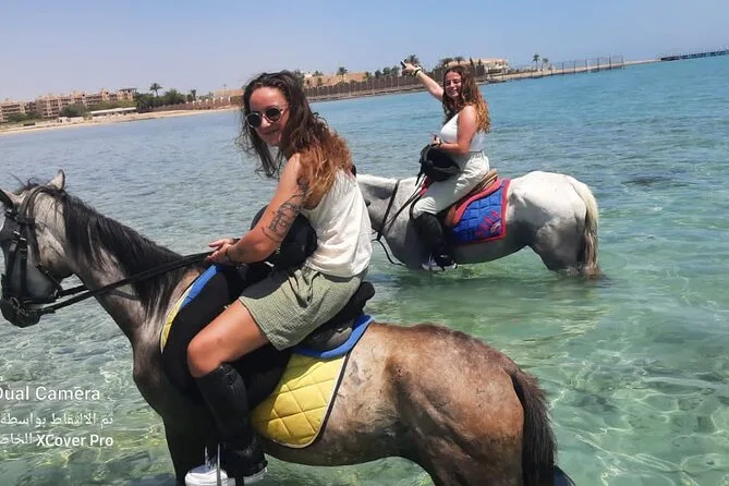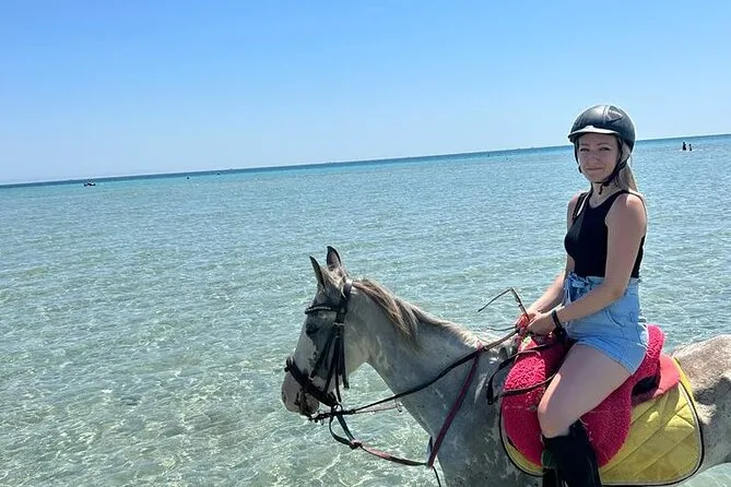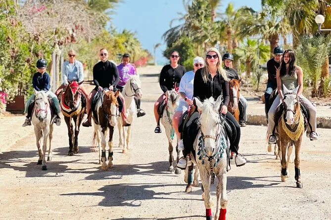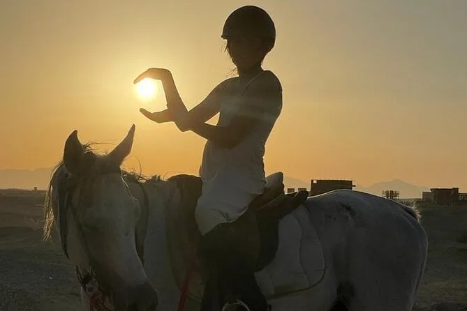 Sua experiência inclui transfer de ida e volta de qualquer lugar em Hurghada, uso de cavalos egípcios bem treinados com um guia local que fala inglês ao seu lado, todos os equipamentos de segurança necessários como capacetes e coletes, água mineral para se refrescar durante o trajeto, além de transporte em veículo com ar-condicionado para você relaxar antes e depois do passeio.