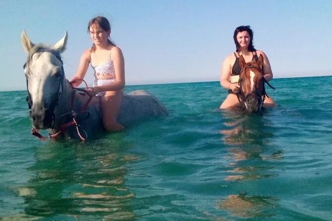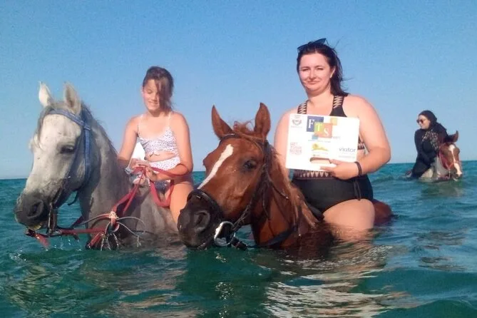 Nadar é opcional; alguns passeios permitem entrar no Mar Vermelho com os cavalos.